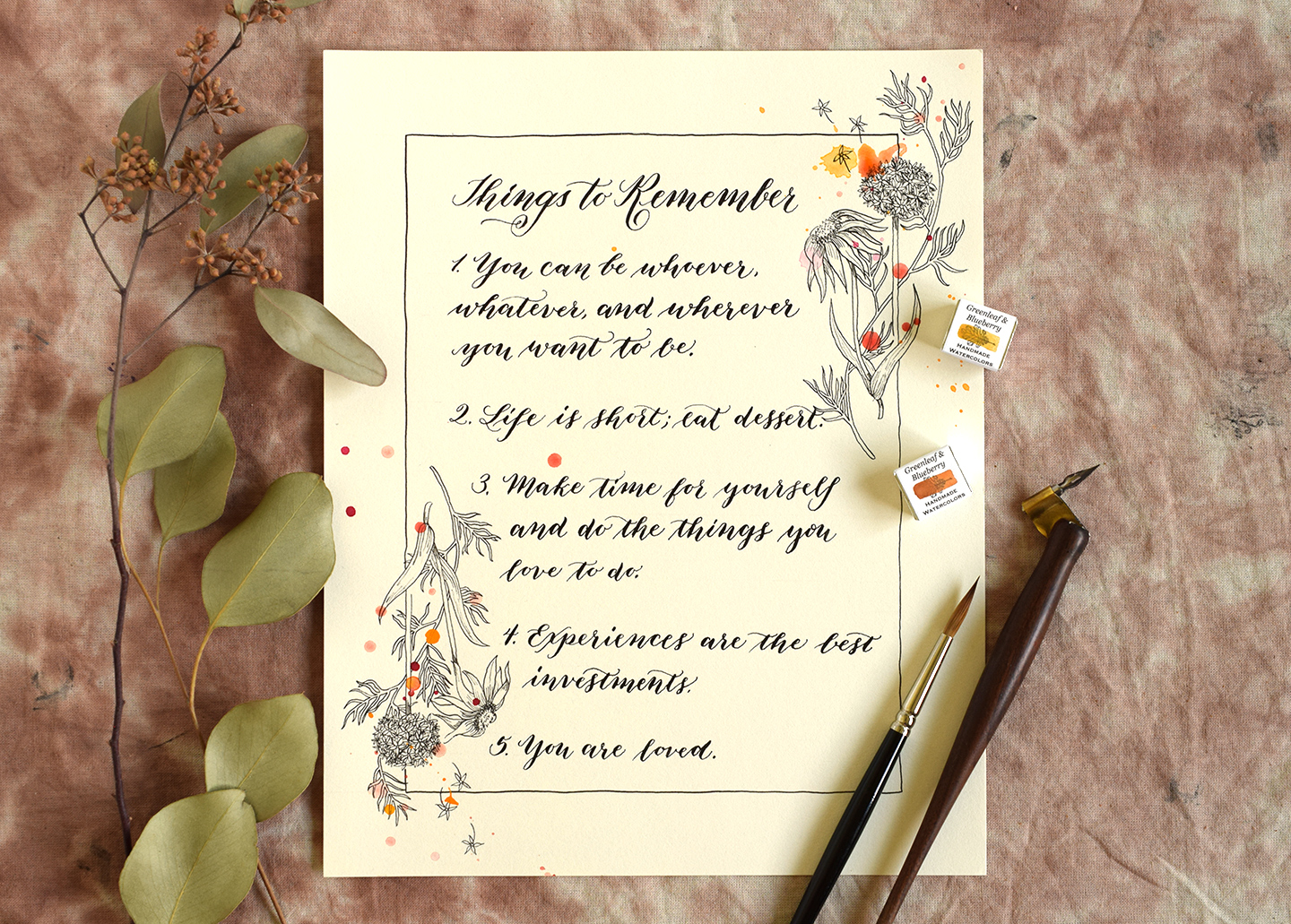After seeing these photos, you may wonder how you can improve your own calligraphy. The real key is practice: pick a calligraphy worksheet to learn with, then set aside a couple of minutes 3-4 days per week to complete the worksheet. Once you have filled out the worksheet, use the style you learned to make fun projects! Mail art, calligraphy ampersands, and goal lists are all fun to create. Working on enjoyable projects will help you to improve your calligraphy like you won’t believe! Worksheets should only lay the foundation for you; the best path to mastery is applying your skill.